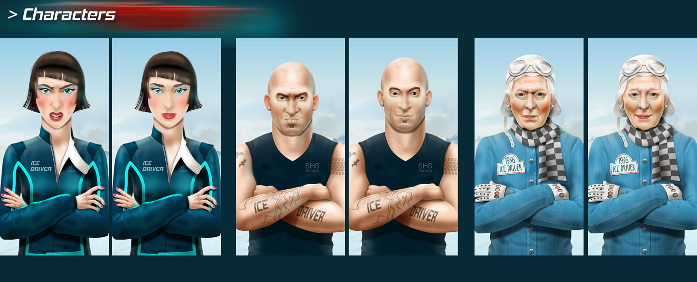 I've created UI, HUD, skybox, textures, application icon and game characters for the game 'Ice Driver' developed by Spooky House Studios UG (haftungsbeschraenkt). It is available on App Store and Mac Store. The game is free.