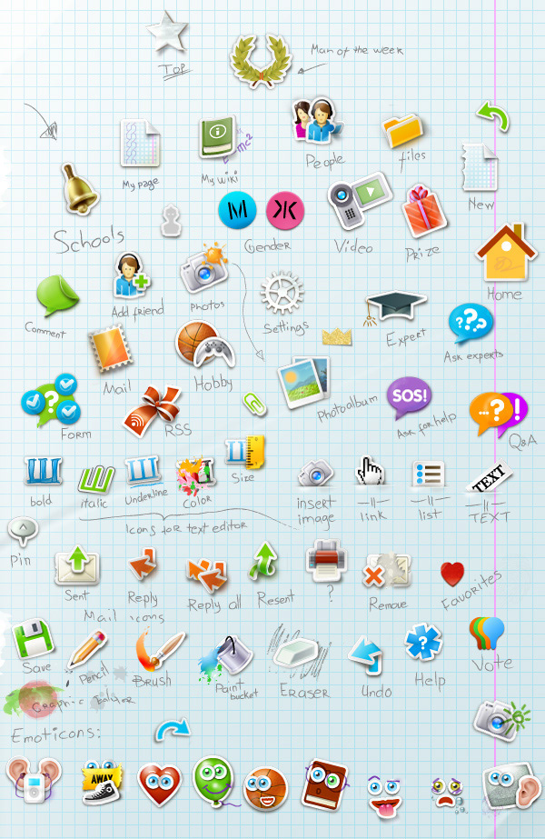 . Looky.ru is an educational web 2.0 resource for teenagers. The icons look like a stickers.