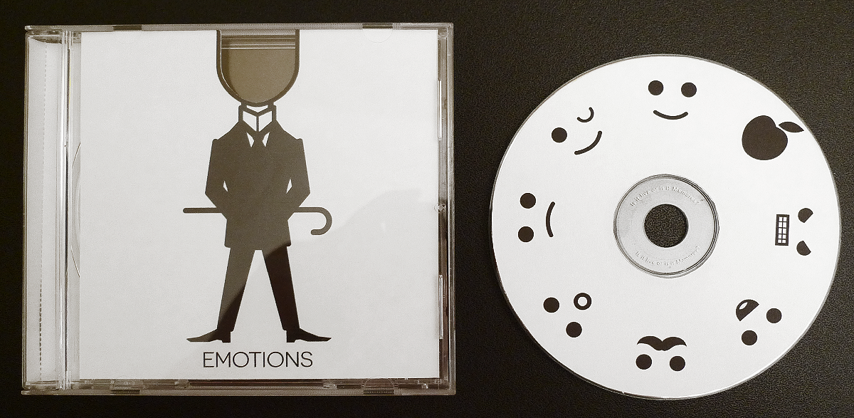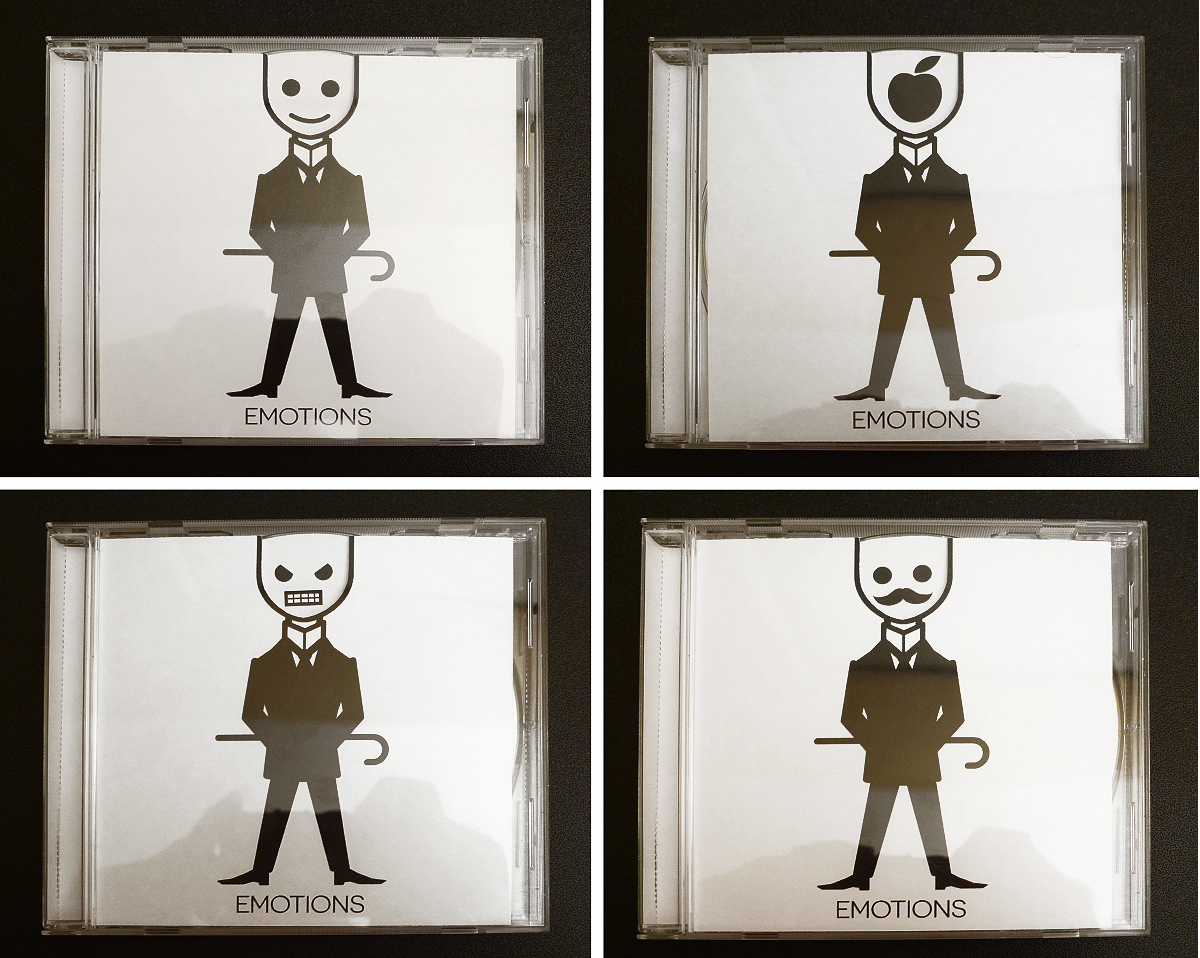 A funny extra to my project: another concept of a CD cover with a special spot in it. In this case several emoticons are printed on a surface of the CD, so by rotating it you can switch between various emotional states of the main character